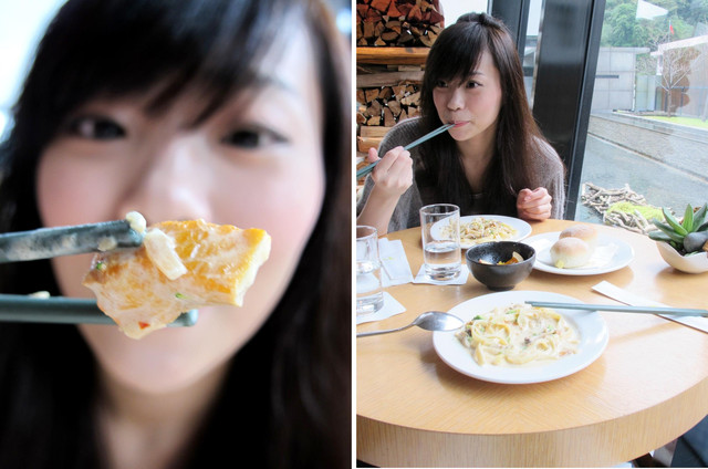 師傅說 哈哈 我們是在煮義大利麵唷 不會放蔥的 XDDDD